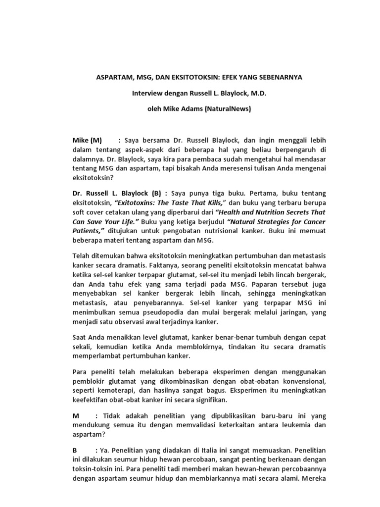 Aspartam Msg Eksitotoksin