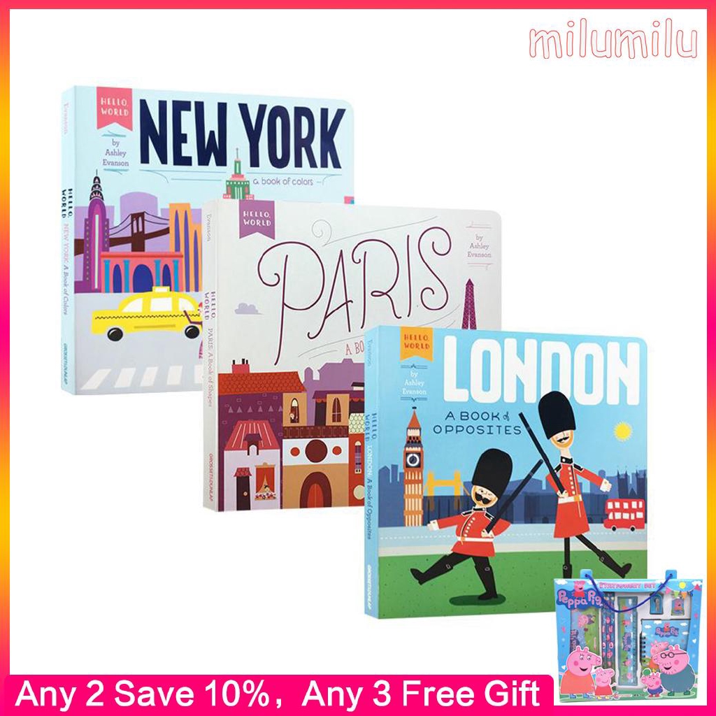 3pcs Hello World New York London A Book Of Opposites Board Book Learn About The World In Picture Books Shopee Singapore